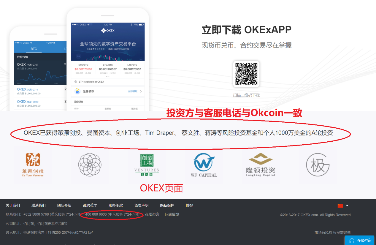 - OKEx 与 OKCoin 为同一实体 — 由北京乐酷达网络科技有限公司运营,投资方、员工、客服团队、域名所有者、招聘信息、账号系统均指向同一运营主体。