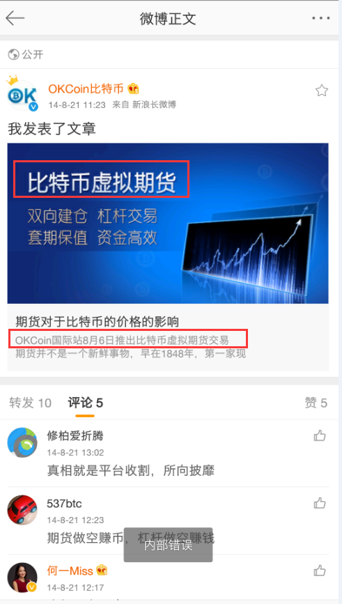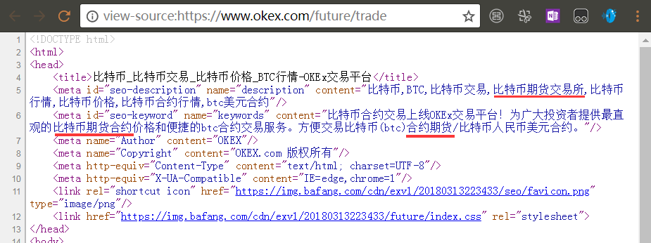 - OKEx 不具备合法期货业务资格 — 经证监会告知书确认 — 却通过国内网站、APP、社交媒体(微博27万+粉丝)积极面向中国用户开展期货业务,网站代码刻意在 SEO 中植入"期货"关键字。