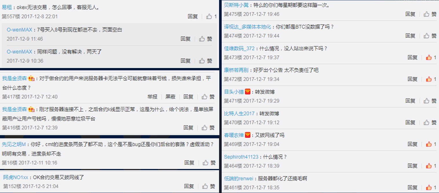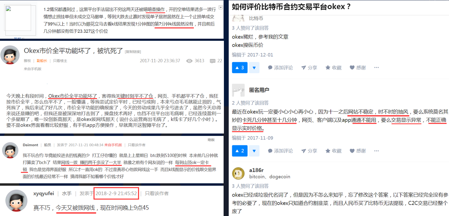 - OKEx 存在有据可查的市场操纵历史 — 包括删除用户数据、部署机器人交易、多次服务器宕机致用户无法平仓、回滚交易数据、交易数据异常等。